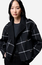 With its structured cut and oversized check pattern, the BERAN jacket adds a graphic and contemporary touch to an urban silhouette, combining tailoring and casual style.