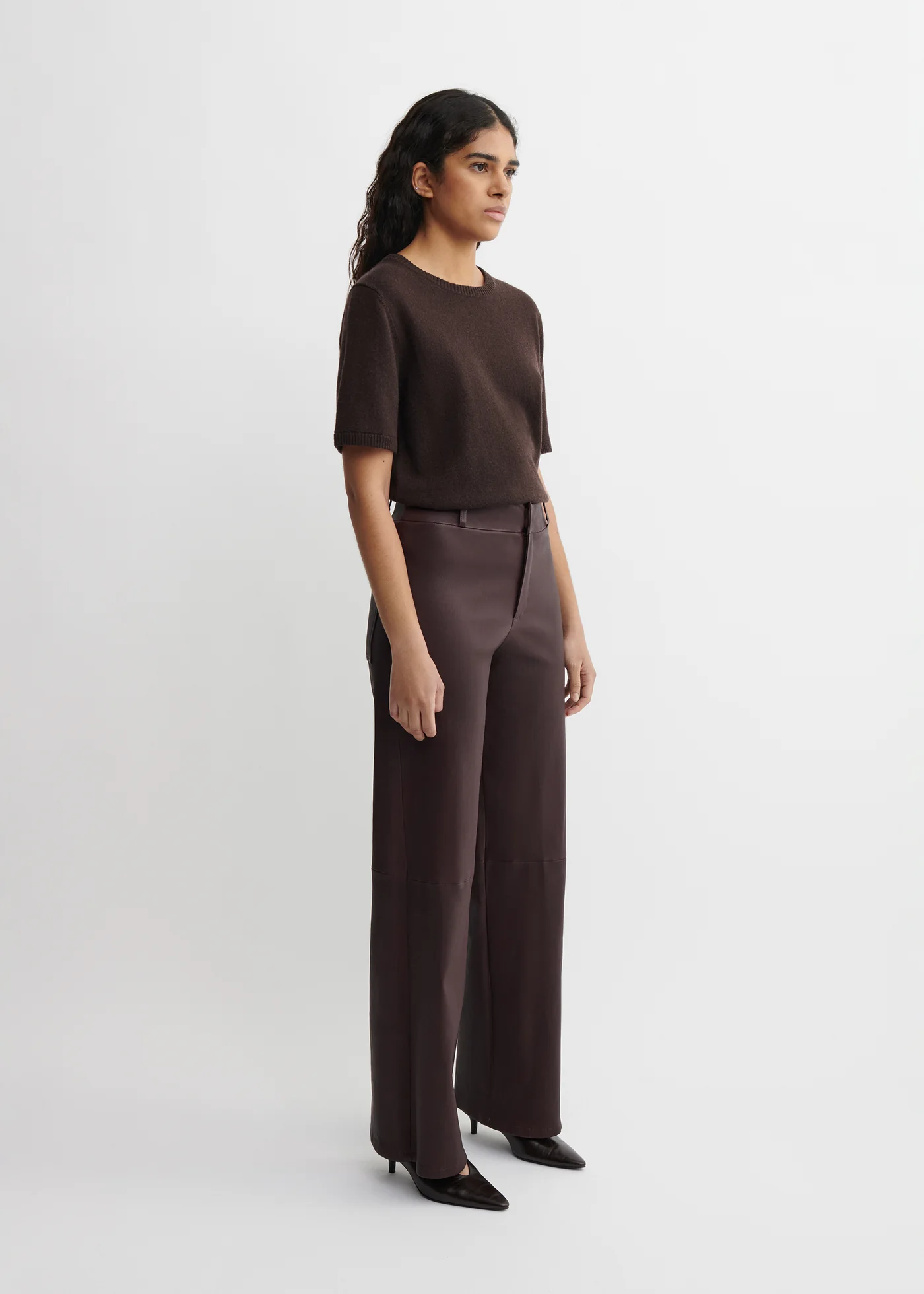 The MARINA | Leather Trousers are crafted from premium 100% lamb leather, offering a buttery-soft feel and a relaxed, effortlessly chic silhouette. Designed with a regular to wide fit, these leather trousers provide both comfort and style—perfect for creating a laid-back luxury look.