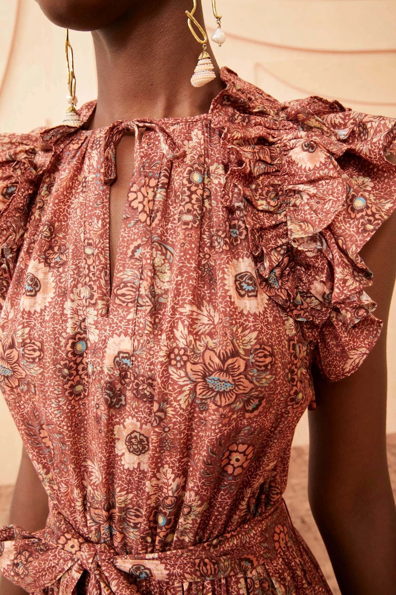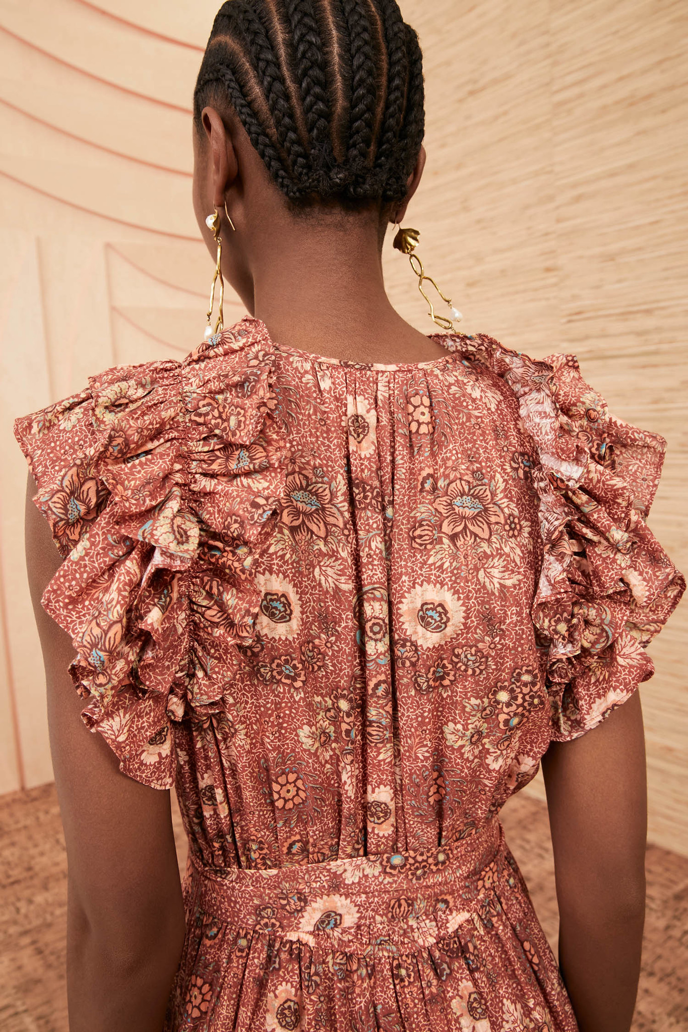 Voile katoen midi-dress met floral print in roze en rood kleurtonen.